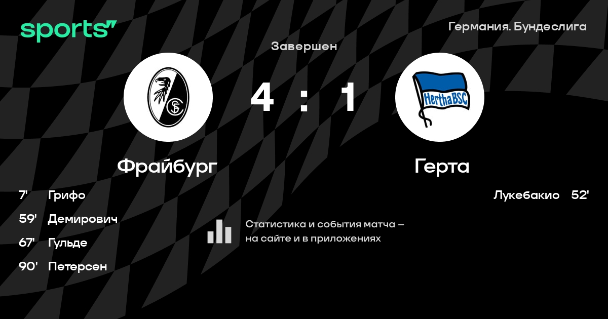 Чемпионат Германии. «Фрайбург» разгромил «Герту», «Вольфсбург» одолел «Штутгарт»