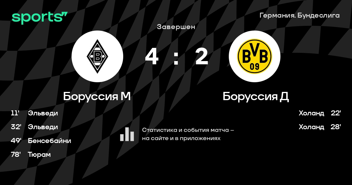 Бюрки - Геррейру, Хуммельс, Аканджи, Морей - Джан, Беллингем, Ройс, Брандт, Санчо - ХоландЗапасные: Хитц, Менье, Пишчек, Шульц, Рейньер, Дауд, Рейна, Мукоко, Тиггес