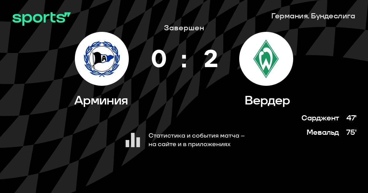 Чемпионат Германии. «Вердер» победил «Арминию» в гостях – 2:0