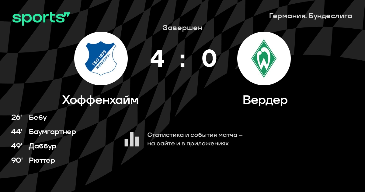 Хоффенхайм – Вердер: Хоффенхайм забивает в 3 последних матчах против этого соперника