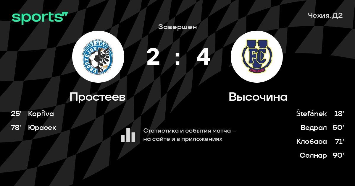 Простеев – Высочина: Простеев не проигрывает в 5 из 7 последних матчей против этого соперника в турнире «Простеев».