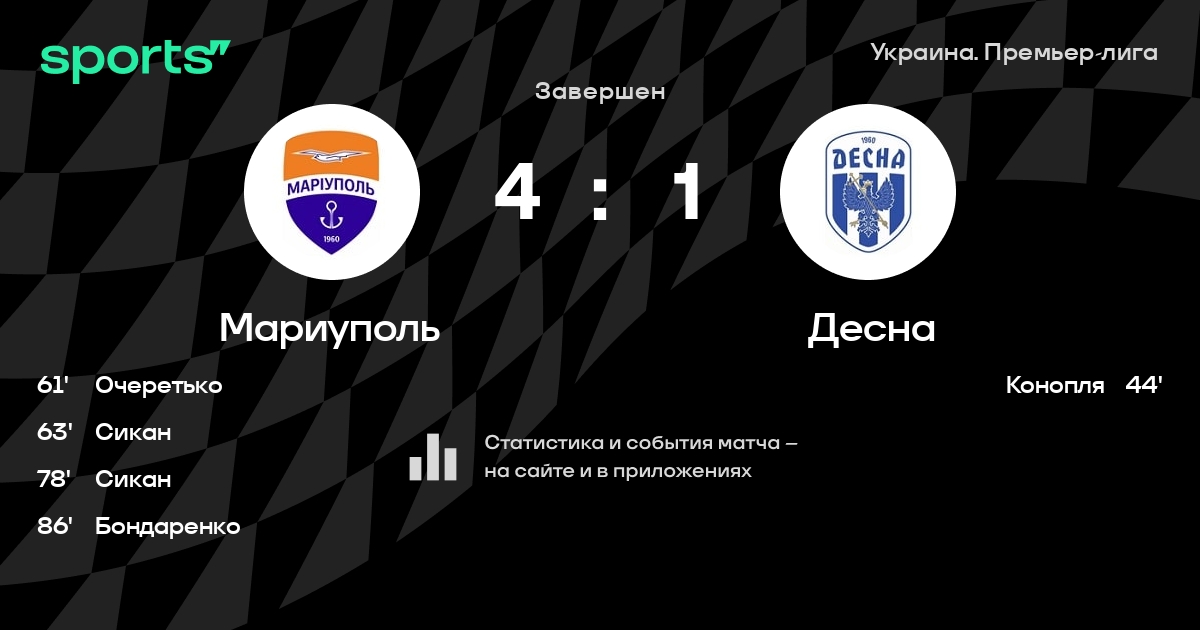 Мариуполь – Десна: Десна побеждает в 6 последних очных матчах