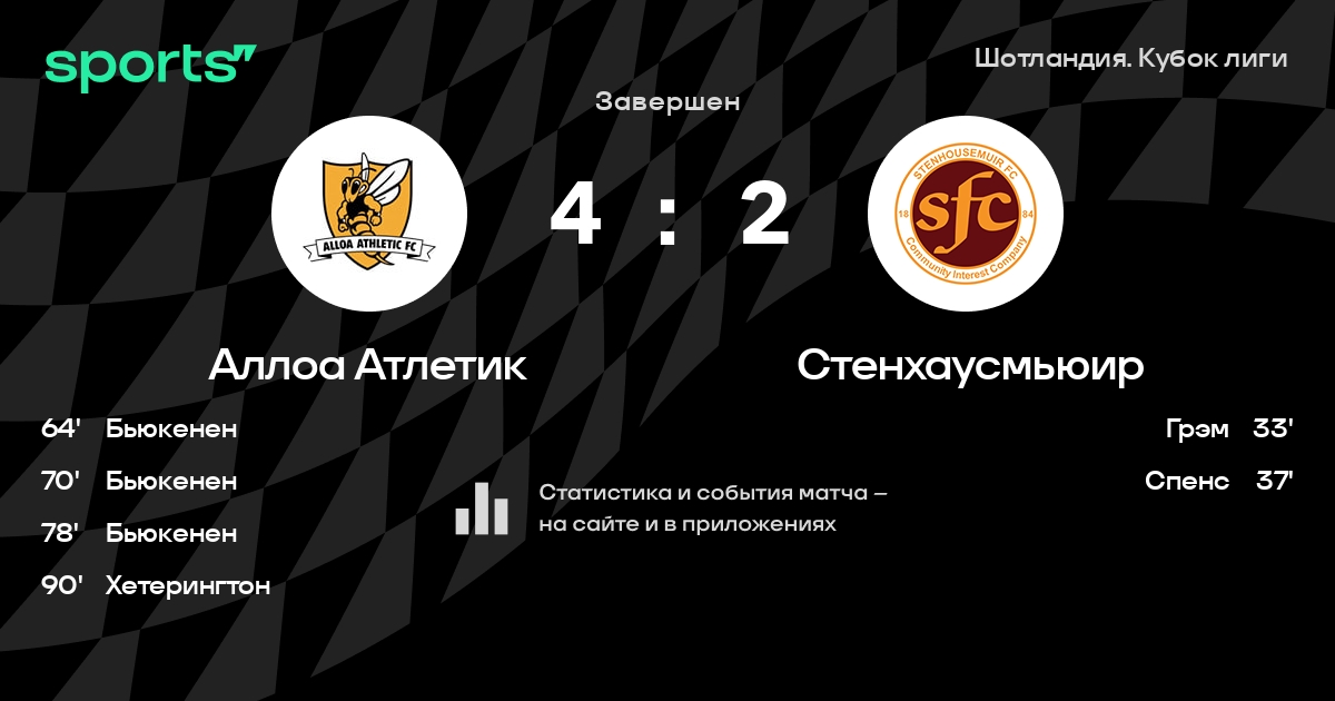 Аллоа Атлетик – Стенхаусмьюир: коэффициенты