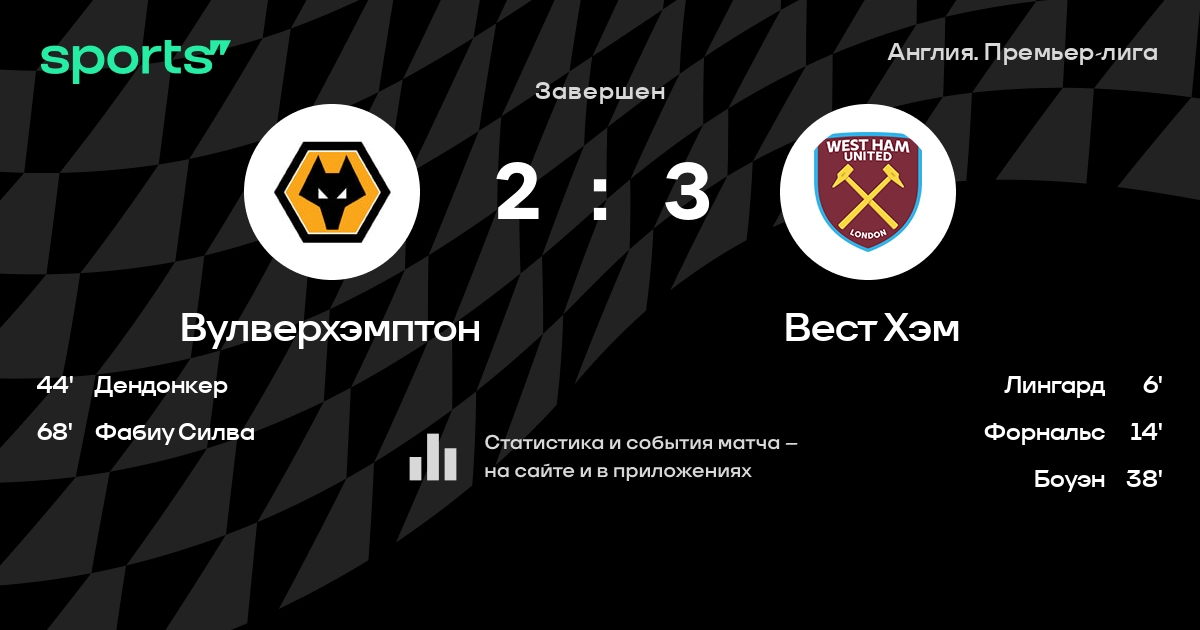 Руй Патрисиу - Аит-Нури, Саисс, Коуди, Семеду - Рубен Невеш, Дендонкер, Траоре, Поденсе, Нету - Виллиан ЖозеЗапасные: Радди, Хувер, Килмен, Маркес, Ричардс, Гиббс-Уайт, Витинья, Отасоуи, Фабиу Силва