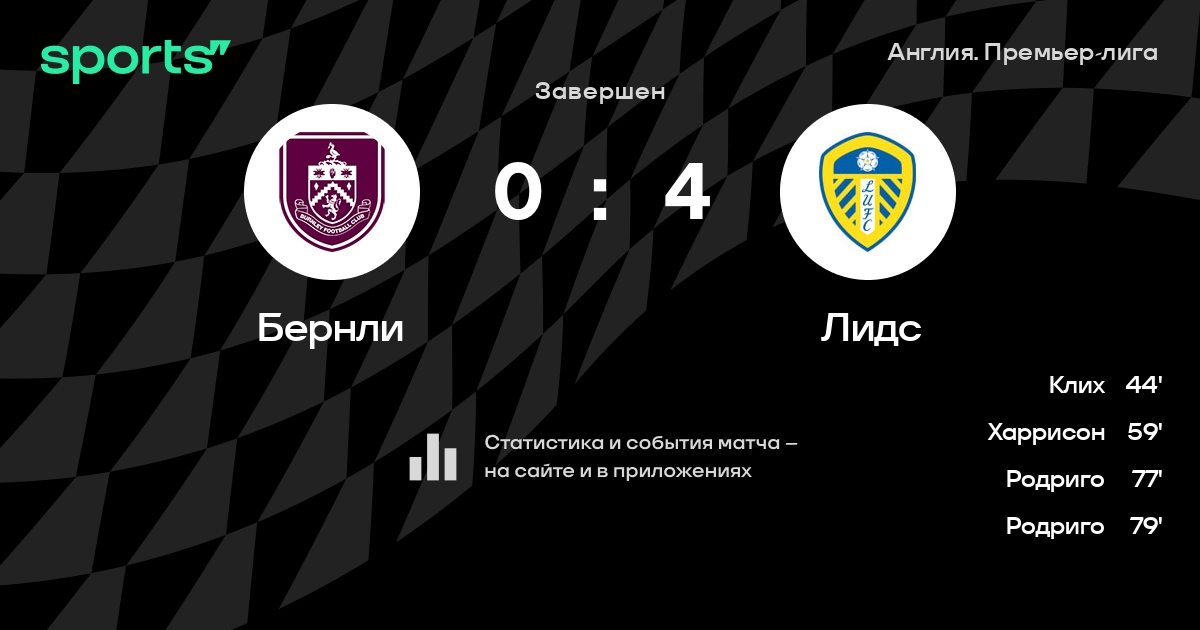 Бернли – Лидс: Лидс побеждает в 4 последних очных матчах в турнире «Англия. Премьер-лига»
