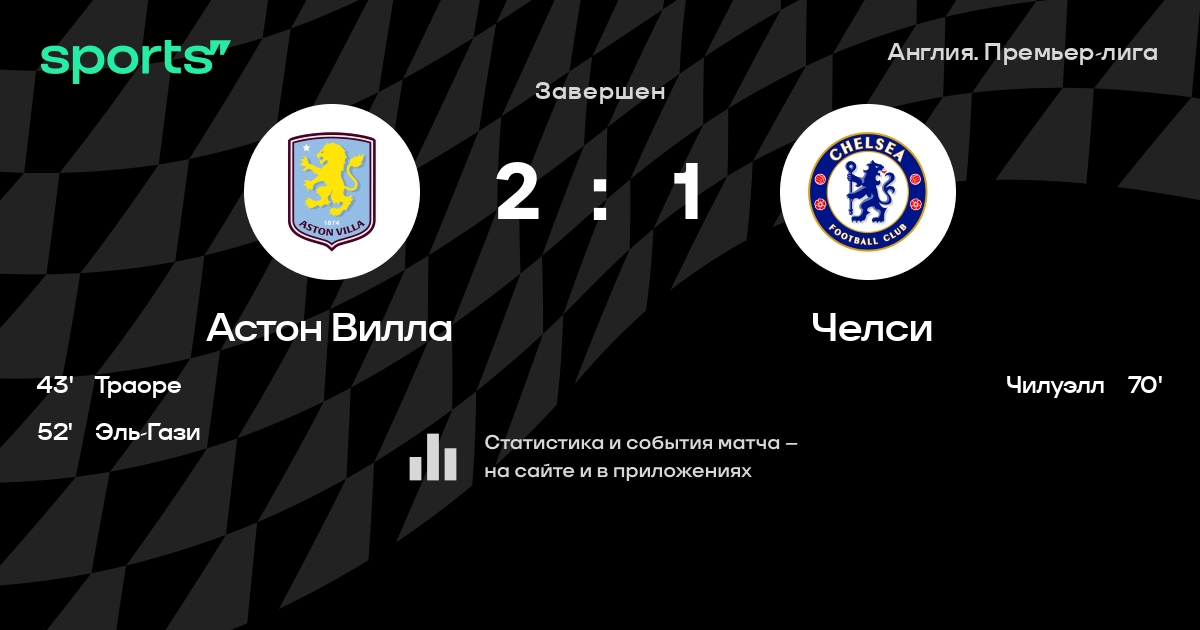 Астон Вилла – Челси: Астон Вилла забивает в 3 последних матчах против этого соперника