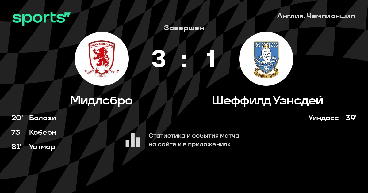 Трансляция Мидлсбро - Шеффилд Уэнсдей