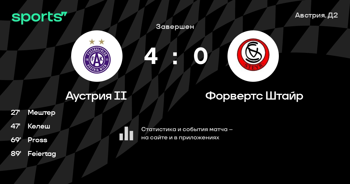 Гиндль - Бейич, Марчинко, Шойссенгайер, Аполлонио - Келеш, Радулович, Браунедер, Эль-Мухантир - Мештер, ProssЗапасные: Хелач, Махер, Майсль, Фишерауэр, Хан, Джордания, Feiertag