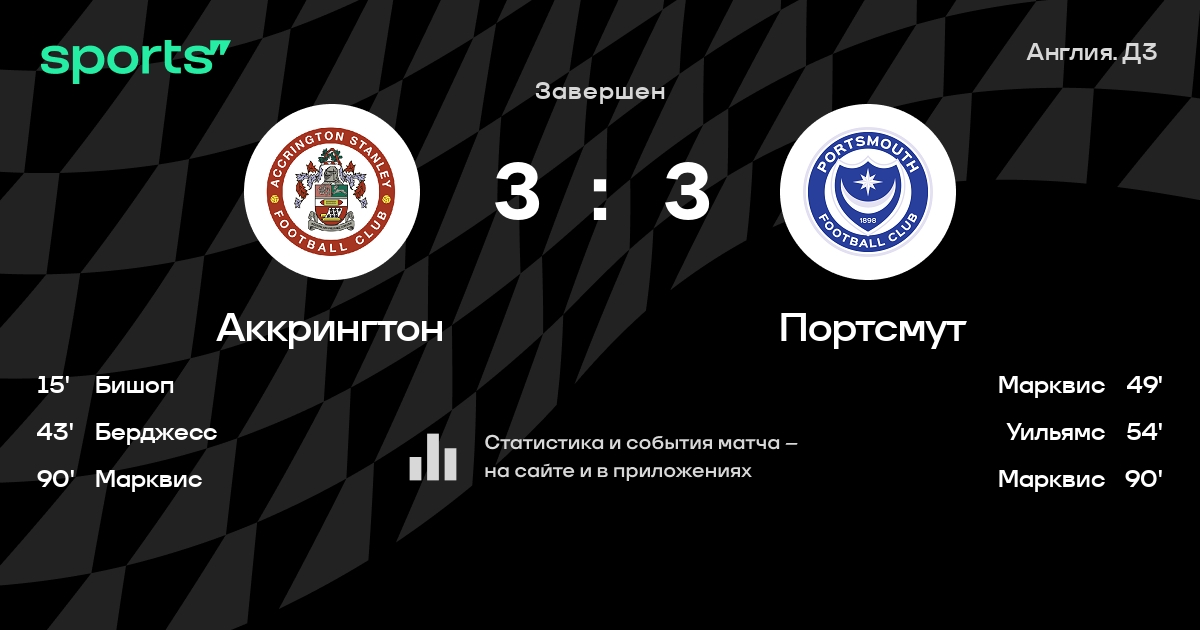 Аккрингтон – Портсмут: Аккрингтон забивает в 3 последних матчах против этого соперника