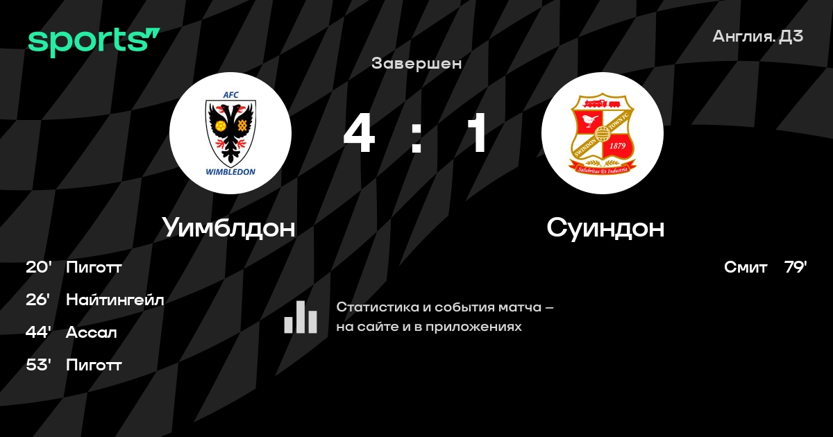 Уимблдон – Суиндон: Уимблдон не пропускает в 3 последних матчах против этого соперника.