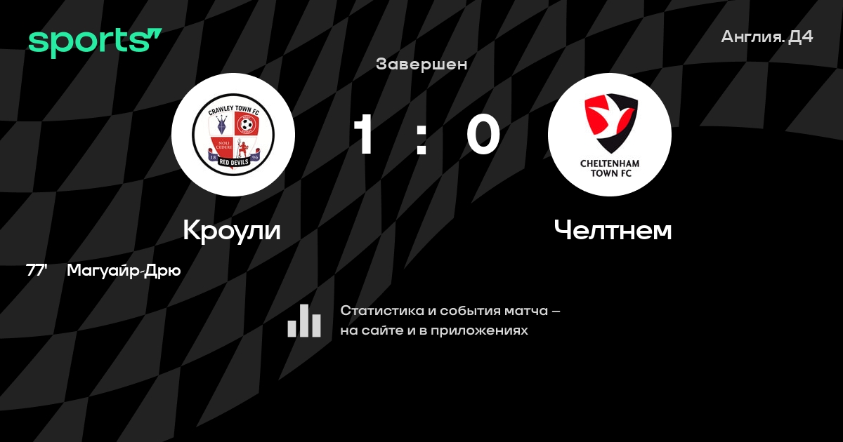 Кроули – Челтенхэм: Кроули не проигрывает в 5 из 7 последних матчей против этого соперника в турнире «Англия. Вторая Лига».