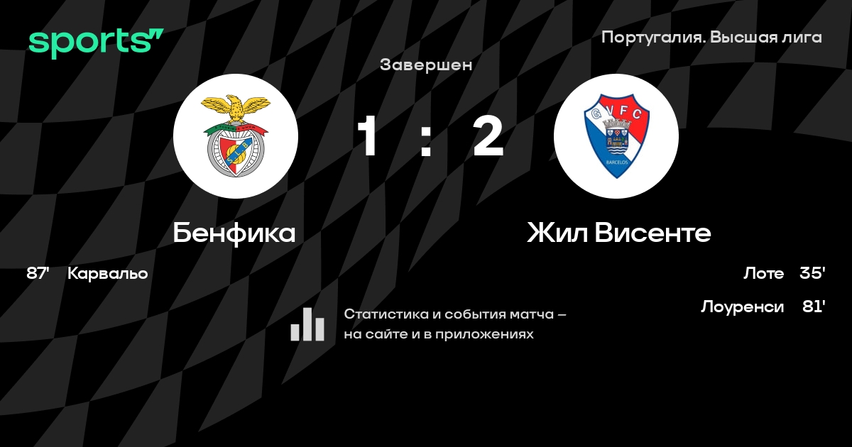 Бенфика – Жил Висенте: Бенфика не пропускает в 5 последних матчах против этого соперника.