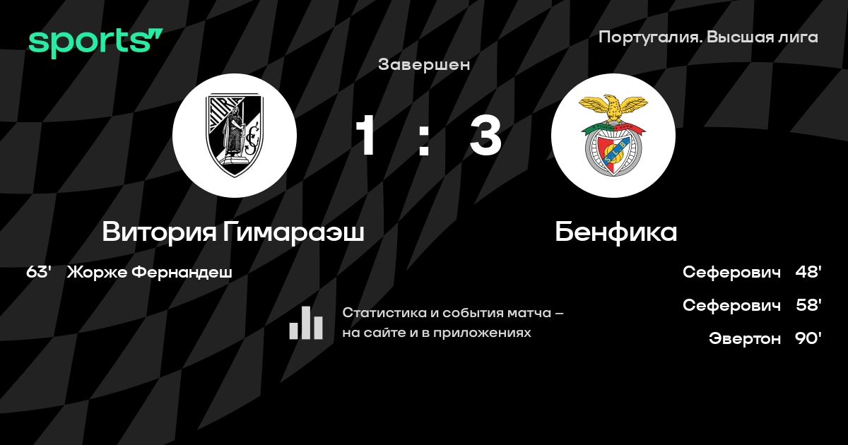 Витория Гимараэш – Бенфика: Бенфика не пропускает в 1 из 8 последних матчей против этого соперника