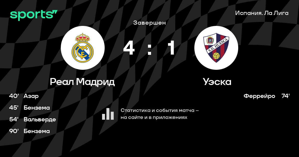 Куртуа - Марсело, Рамос, Милитао, Васкес - Модрич, Каземиро, Вальверде - Асенсио, Азар, БенземаЗапасные: Альтубе, Лунин, Менди, Сантос, Варан, Иско, Кроос, Мариано Диас, Йович, Винисиус Жуниор, Родриго
