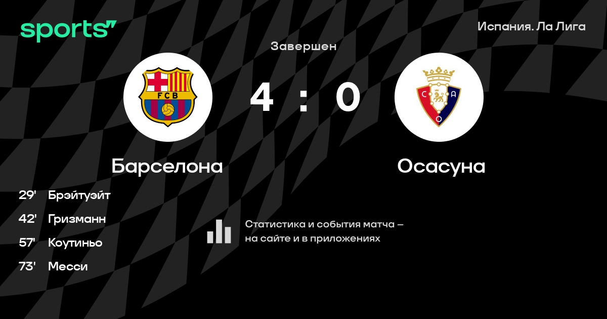 тер Стеген - Альба, Лангле, Мингеса, Дест - Коутиньо, де Йонг, Педри - Гризманн, Брэйтуэйт, МессиЗапасные: Нето, Пенья, Фирпо, Аленья, Бускетс, Фернандес, Пьянич, Пуч, Дембеле, Тринкау