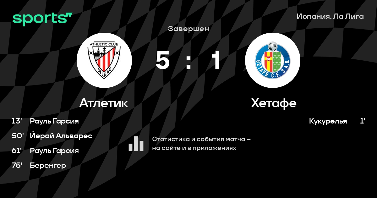 Чемпионат Испании. «Атлетик» разгромил «Хетафе» – 5:1