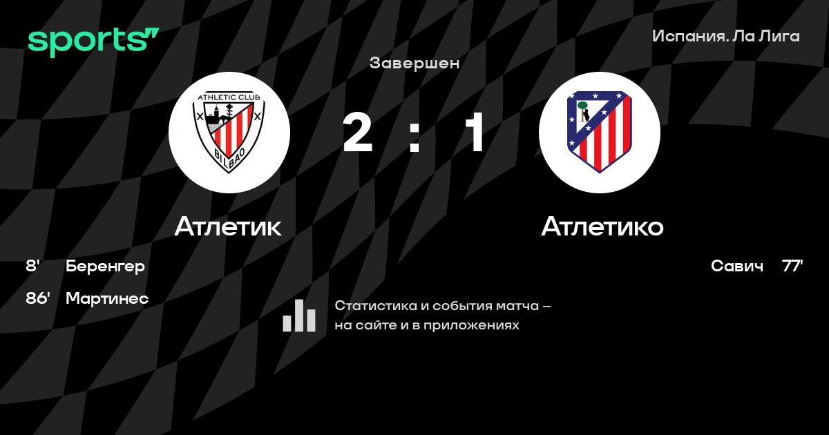 Атлетик – Атлетико: Атлетико забивает в 3 последних матчах против этого соперника