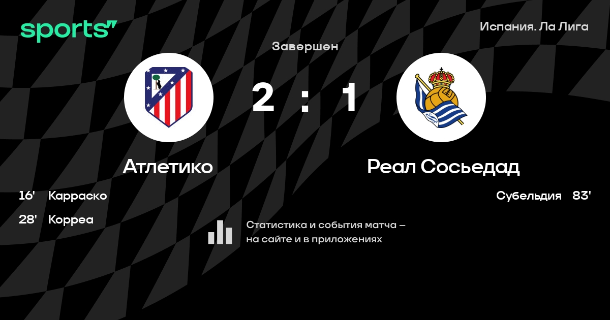 Атлетико – Реал Сосьедад: Атлетико не проигрывает в 7 последних матчах против этого соперника дома