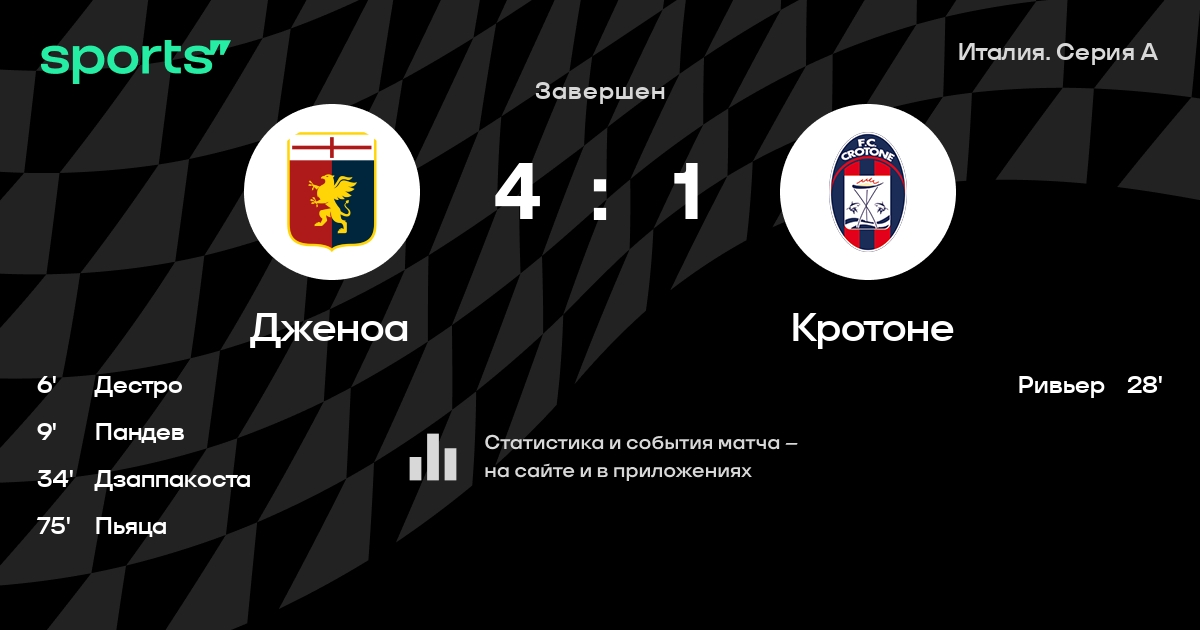 Кордац - Големич, Марроне, Магальян - Маццотта, Жуниор Мессиас, Дзанеллато, Чигарини, Молина - Ривьер, НванквоЗапасные: Креспи, Феста, Рисполи, Сполли, Крочата, Гомелт, Мустаккьо, Эдуардо Энрике, Дрэгуш, Каргбо