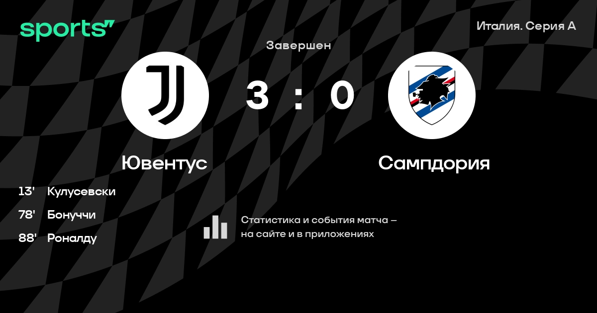 Шченсны - Кьеллини, Бонуччи, Данило - Фработта, Рэмзи, Маккенни, Рабьо, Куадрадо - Кулусевски, РоналдуЗапасные: Буффон, Пинсольо, Де Шильо, Демирал, Ругани, Бентанкур, Дуглас Коста, Николусси-Кавилья, Портанова, Артур, Вриони