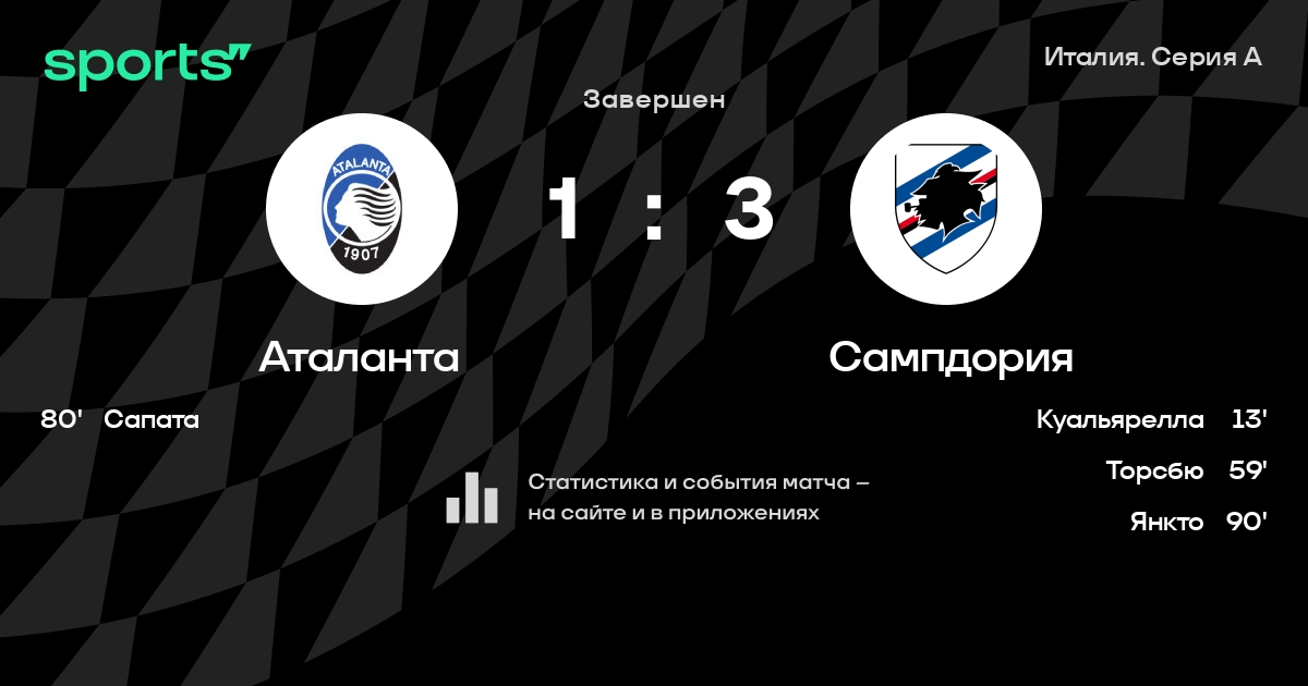 «Аталанта» проиграла «Сампдории» (1:3). Миранчук провел матч в запасе