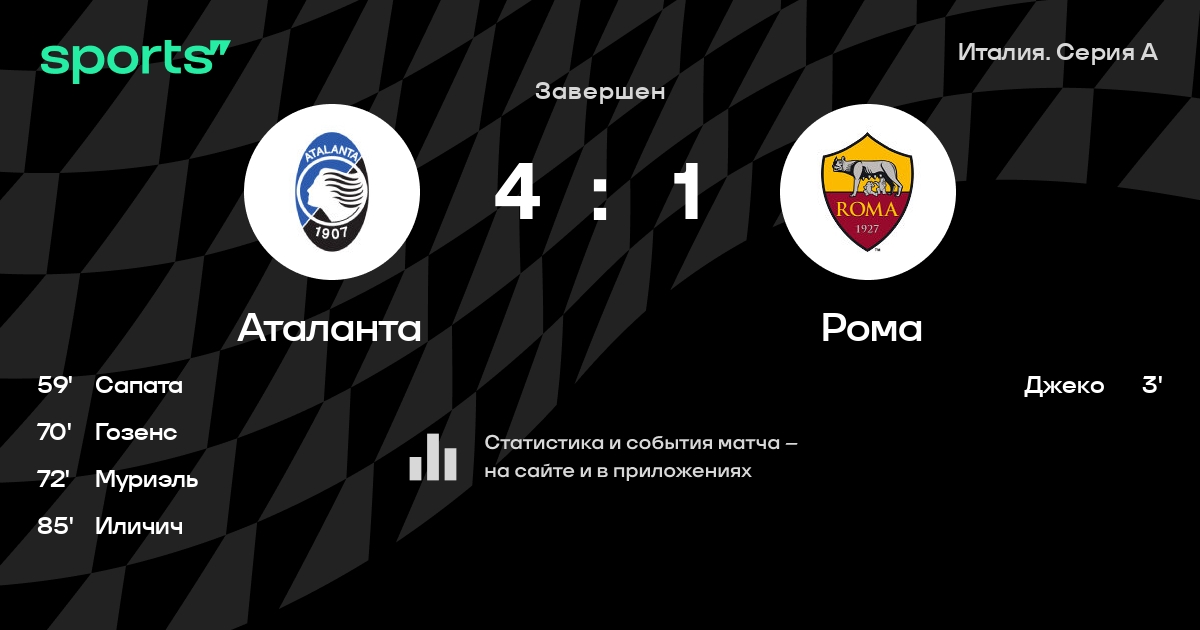 Голлини - Джимшити, Ромеро, Толои - Гозенс, Пессина, Малиновский, Фройлер, де Рон, Хатебур - СапатаЗапасные: Росси, Спортьелло, Депаоли, Мохика, Паломино, Шутало, Джабуаа, Иличич, Миранчук, Ламмерс, Муриэль, Диалло