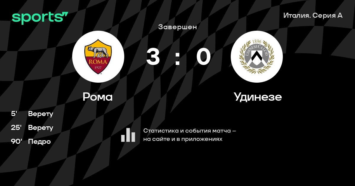 Лопес - Рожер, Манчини, Кристанте - Спинаццола, Мхитарян, Пеллегрини, Верету, Вильяр, Карсдорп - МайоральЗапасные: Фузато, Миранте, Фасио, Сантон, Бруно Перес, Диавара, Пасторе, Джеко, Эль-Шаарави, Карлес Перес, Педро