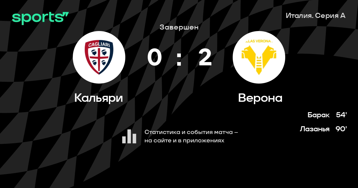 Краньо - Клаван, Годин, Ругани - Ликояннис, Данкан, Наингголан, Нандес, Дзаппа - Жоао Педро, ЧерриЗапасные: Арести, Викарио, Асамоа, Калабрези, Карбони, Валюкевич, Дейола, Марин, Перейро, Паволетти, Симеоне
