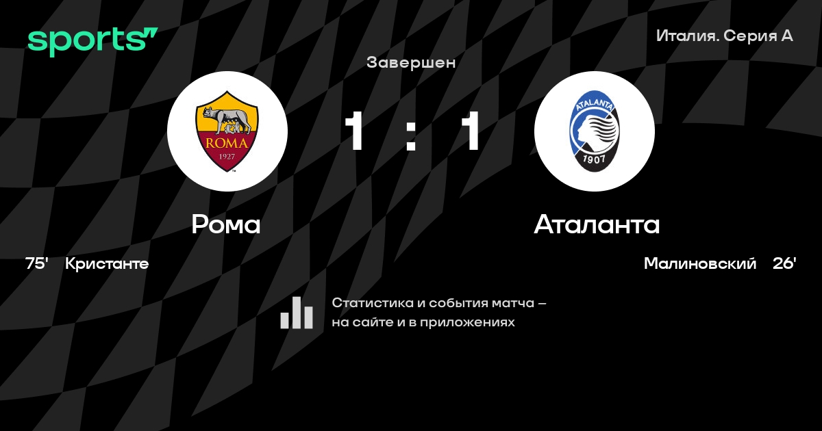 | 3 | Аталанта | 38 | 23 | 9 | 6 | 90 | 47 | +43 | 78 | ||
