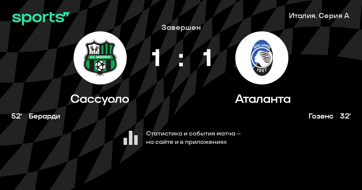 Сассуоло – Аталанта: Аталанта побеждает в 8 последних очных матчах