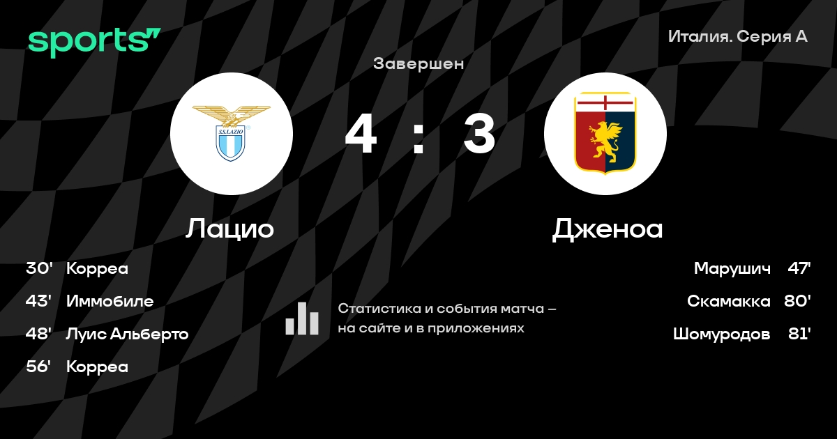 Лацио – Дженоа: Лацио не проигрывает в 5 из 7 последних матчей против этого соперника дома