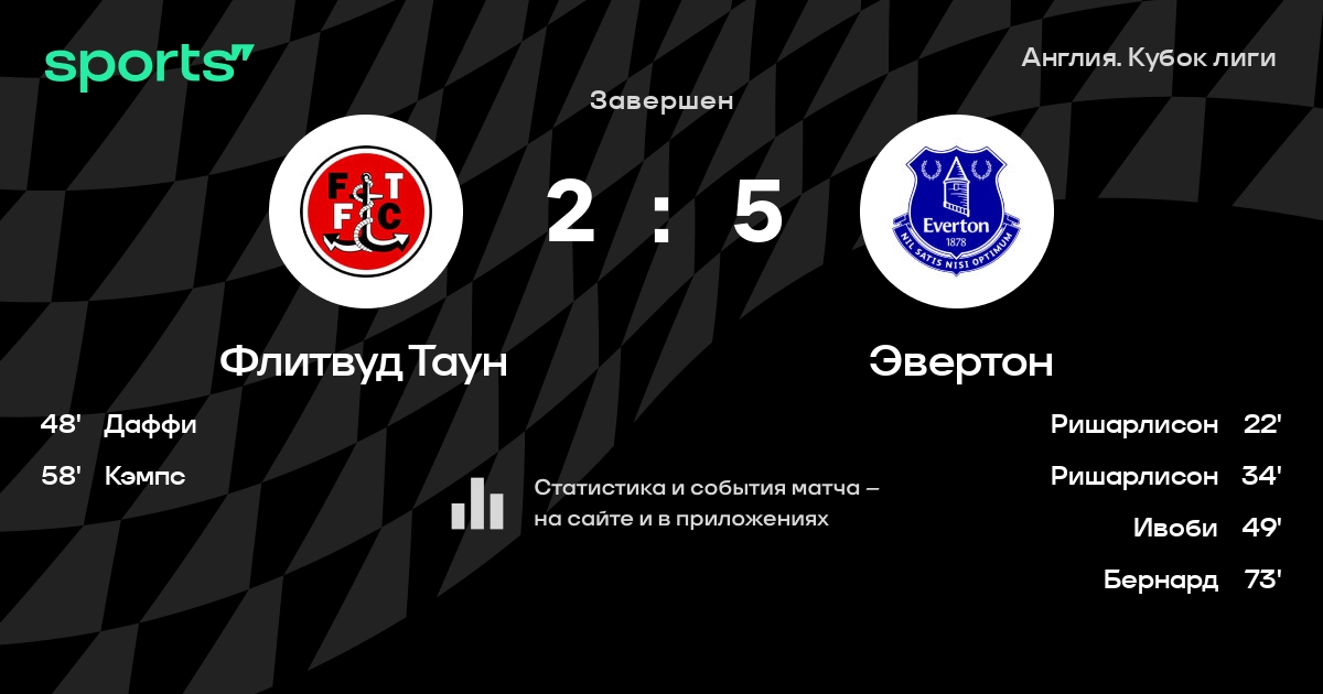 «Эвертон» забил 5+ голов в двух матчах подряд впервые за 56 лет