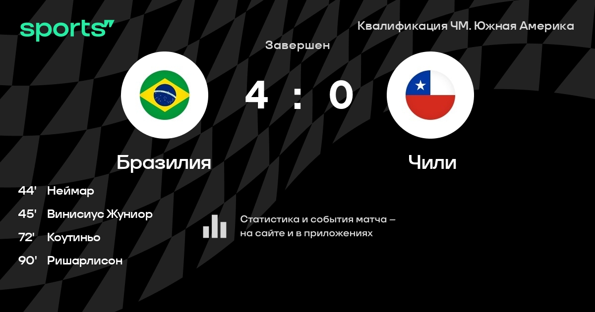 Бразилия – Чили: Бразилия не пропускает в 3 последних матчах против этого соперника