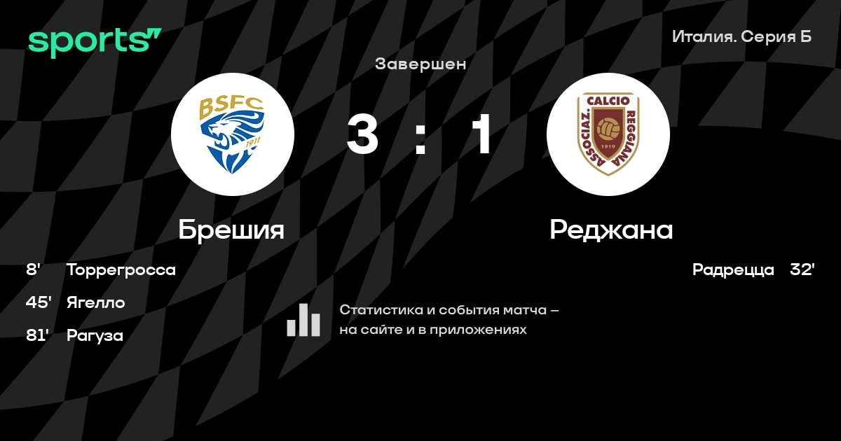 Брешия – Реджана: Реджана забивает в 3 последних матчах против этого соперника