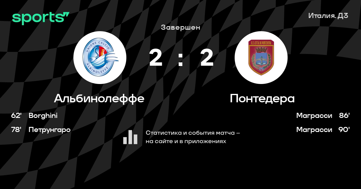 Альбинолеффе – Понтедера: Альбинолеффе побеждает в 3 последних очных матчах в турнире «Италия. Д3»