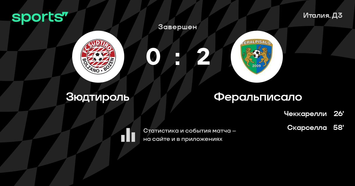 Полуцци - Курто, Маломо, Морелли, Fabbri - Гатто, Beccaro, Casiraghi, Греко - Odogwu, РоверЗапасные: Pircher, Менегетти, Полак, Винето, Davì, Эль-Кауакиби, Karic, Fink, Вольтан, Magnaghi, Фишналлер