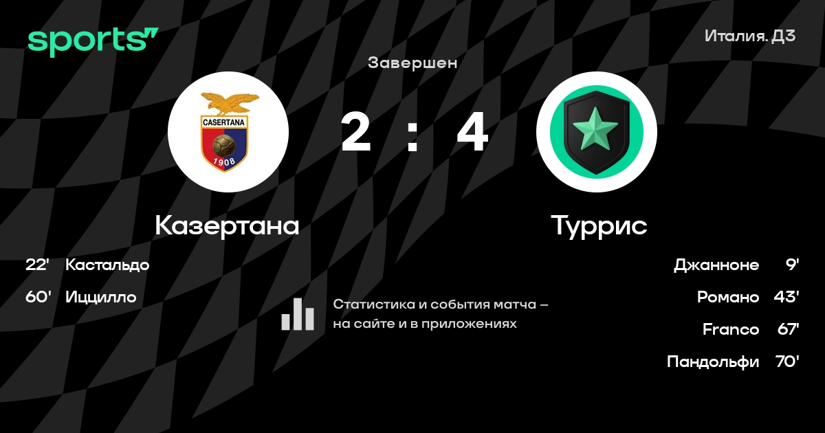 Abagnale - Di Nunzio, Loreto, Esempio, Rainone - Da Dalt, Синьорелли, Романо, Franco - Персано, ДжаннонеЗапасные: Lonoce, Бароне, Д`Игнацио, Lorenzini, Lame, Marchese, Тасконе, Fabiano, Alma, Sandomenico, Пандольфи, Longo