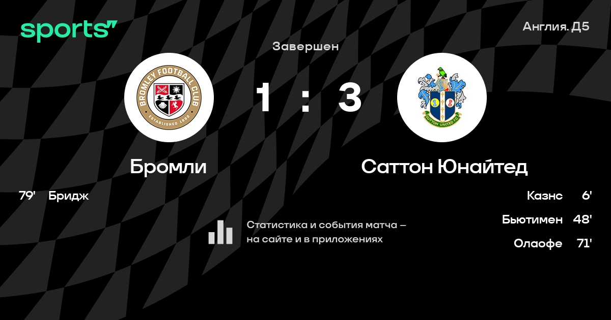 Трансляция Бромли - Саттон Юнайтед