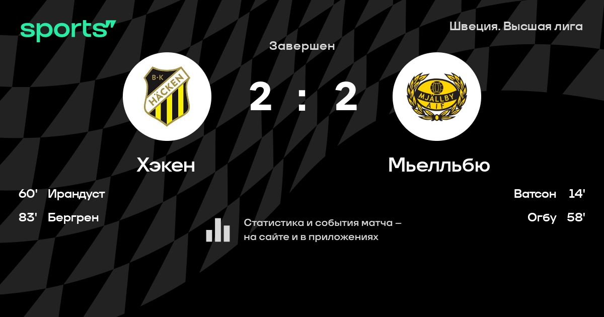 Эрикссон - Агардиус, Лефгрен, Ватсон - Тамими, Густавссон, Лефквист, Шабович, Нильссон - Огбу, БергстремЗапасные: Fredriksson, Бьеркандер, Густафссон, Петерссон, Спельманн, Моро, Перссон