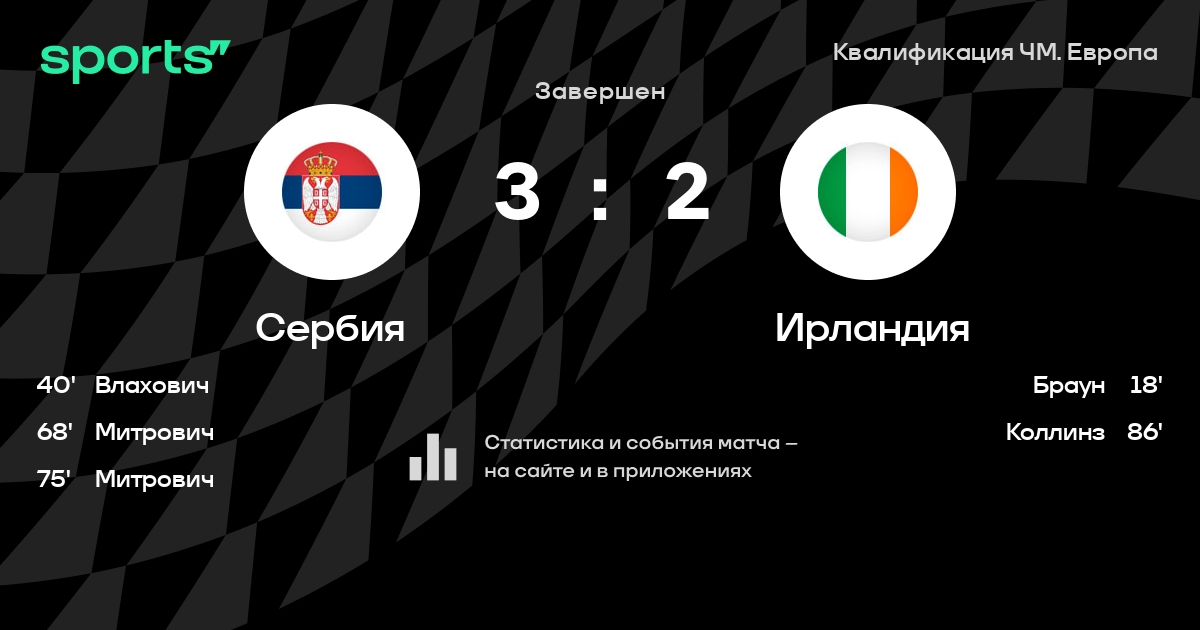 Сербия – Ирландия: Сербия забивает в 3 последних матчах против этого соперника