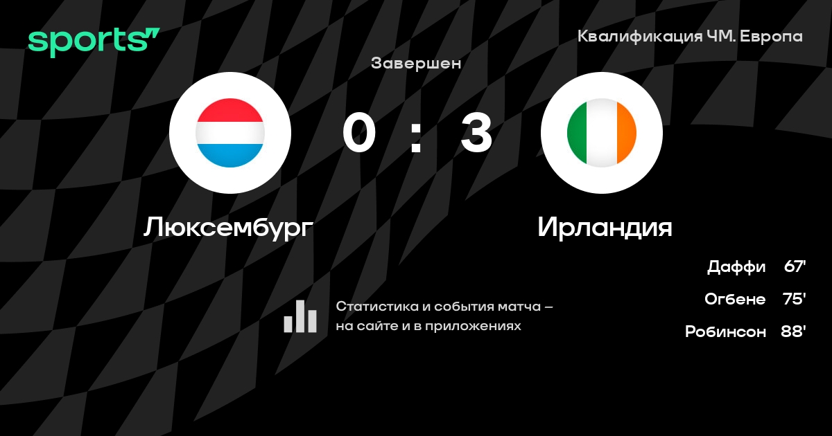 | 3 | Ирландия | 8 | 3 | 9 | ||