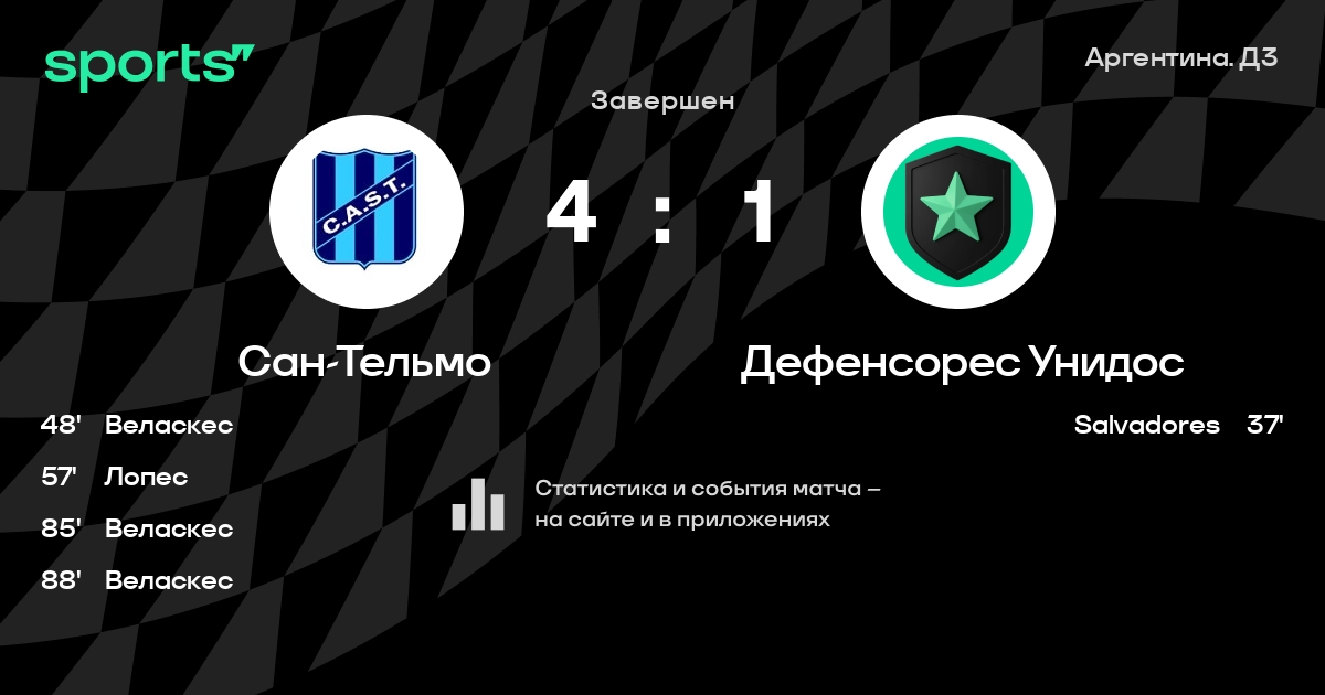 Сан-Тельмо - Дефенсорес Унидос: положение в турнире