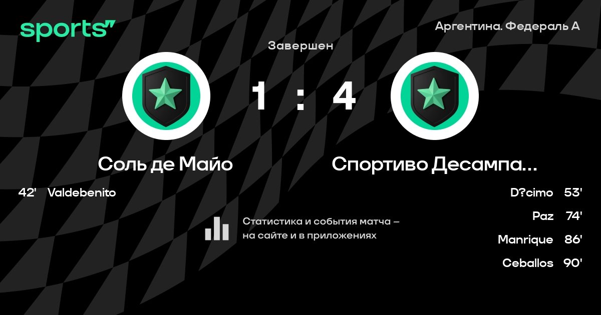 Трансляция Соль де Майо - Спортиво Десампарадос