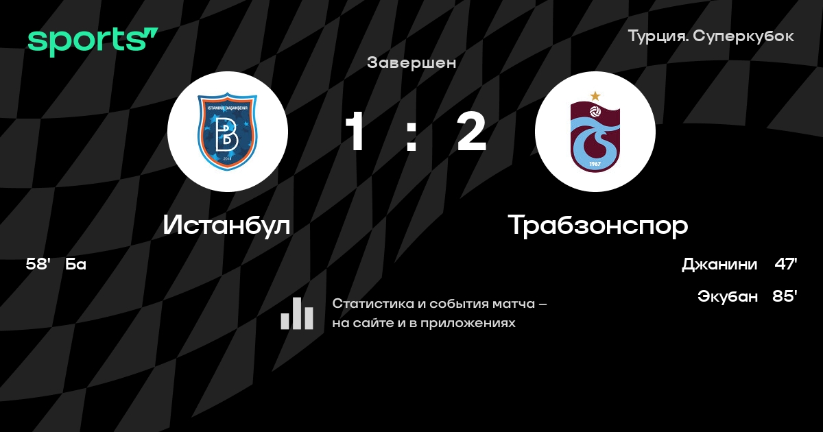 «Трабзонспор» в 9-й раз выиграл Суперкубок Турции, одолев «Истанбул» (2:1)