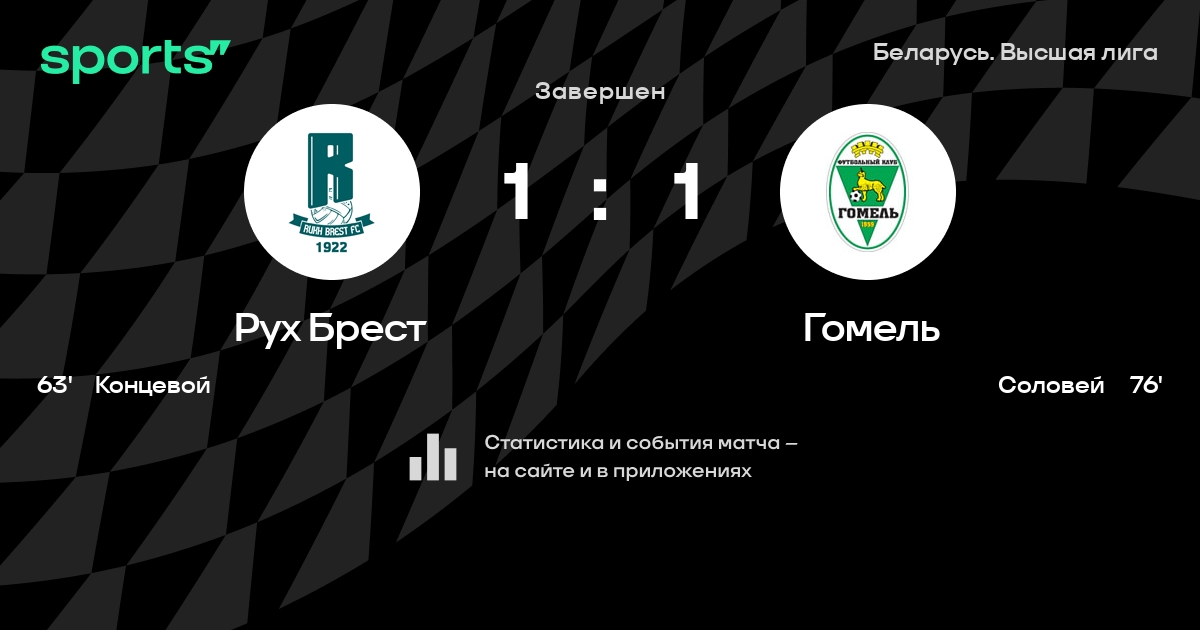 В последних 5 играх Рух Брест забивает в среднем 2.20 гола за игру