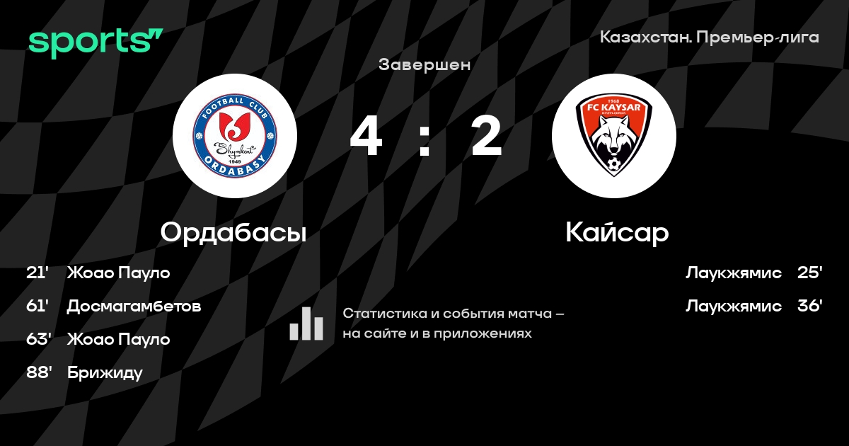 Ордабасы – Кайсар: Кайсар не проигрывает в 9 последних матчах против этого соперника