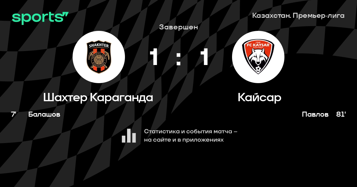 Шахтер Караганда – Кайсар: Кайсар не проигрывает в 6 из 8 последних матчей против этого соперника