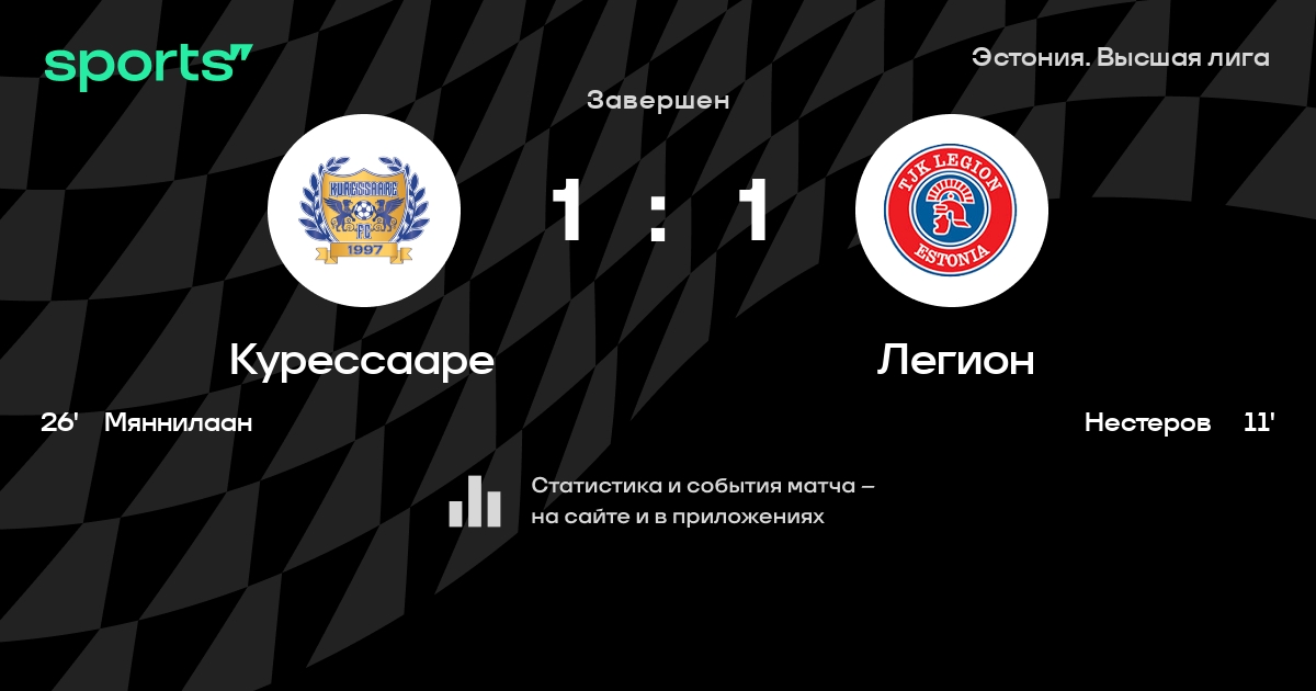 Курессааре – Легион: Курессааре не проигрывает в 5 из 6 последних матчей против этого соперника