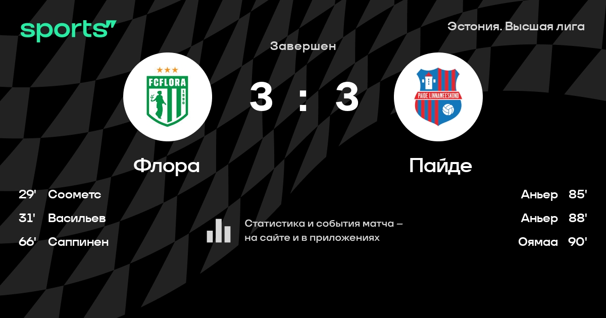 Флора – Пайде: Флора забивает в 30 последних матчах против этого соперника