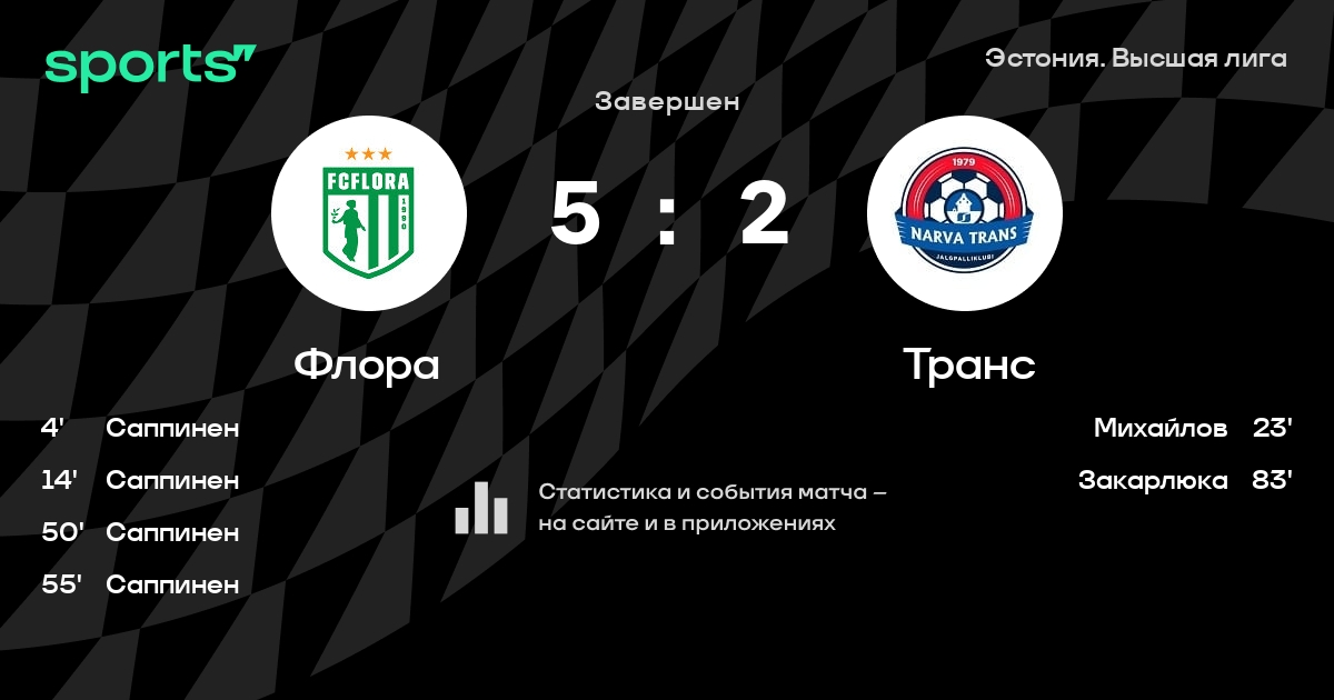 Флора – Транс: Флора забивает в 15 последних матчах против этого соперника